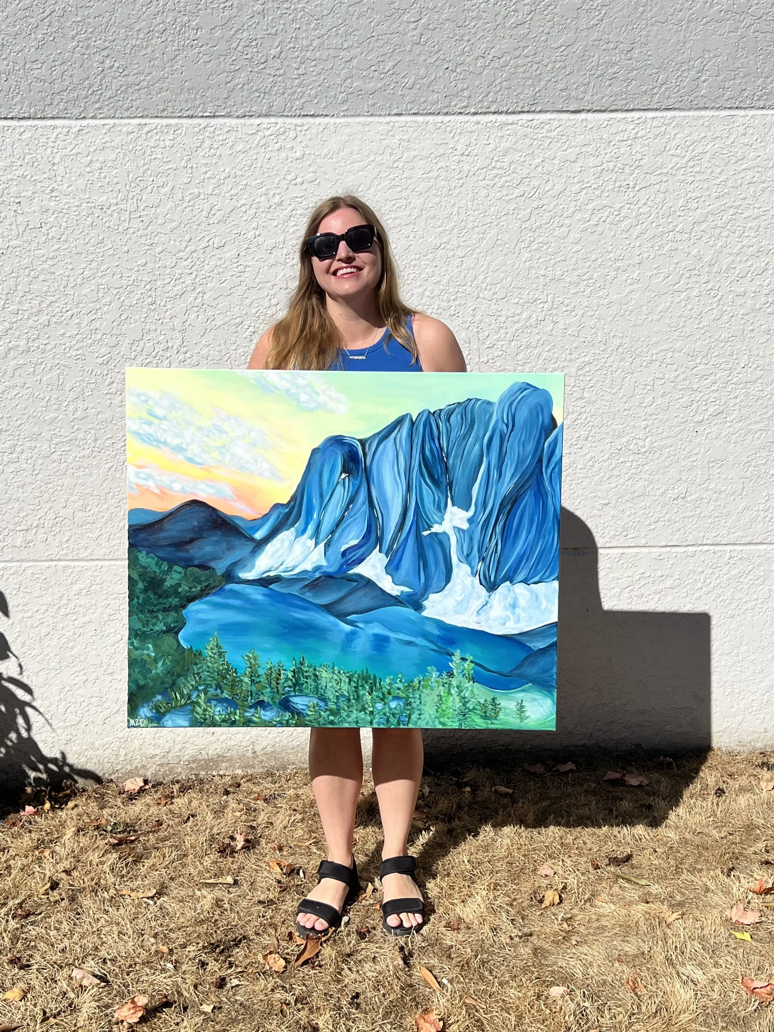 I’m an avid traveler and take inspiration from the landscapes and wildlife around me giving everything my vibrant colourful spin. I’m particularly drawn to the wilderness of British Columbia with it’s stunning mountains and lakes. When I’m not painting you can find me chasing peaks, skiing or planning my next big adventure.